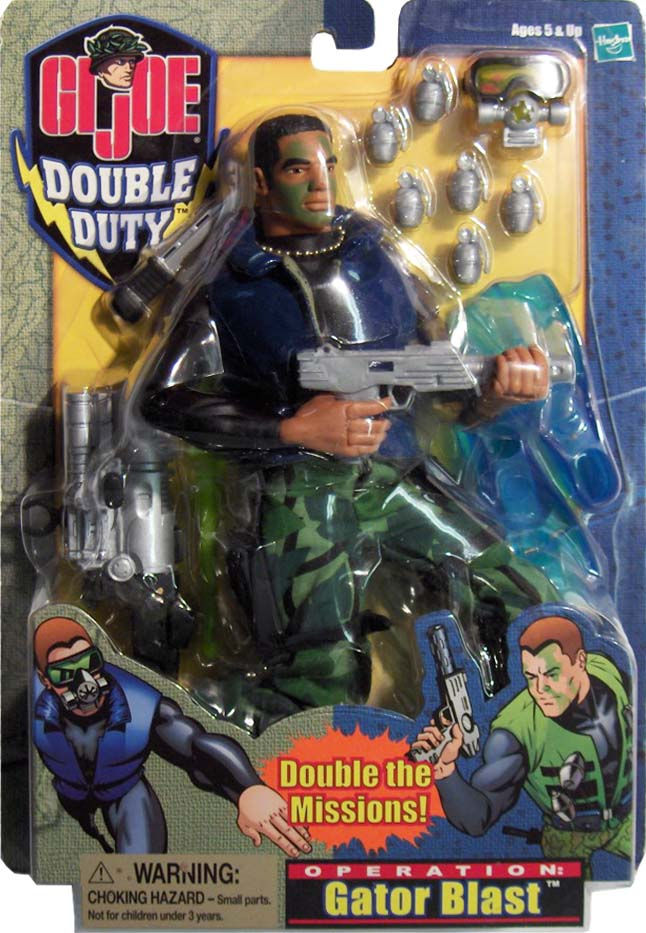 Thematically, Double Duty fits in the gap between Classic/Military GI Joes and Adventure Team. That leads to a detail many collectors may have missed. There were actually 6 Double Duty Joes released… The last 2 Midnight Scorpion and Stealth Shot were re-themed before release to become Dusty and Grunt. These final figures had exciting new-tooled weapons with multi-functions.