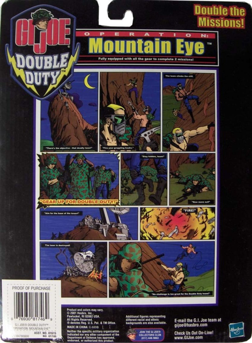 I created Double Duty the same way I played out my own back-yard-battles in the late 60’s early 70’s – pull out ALL the gear to equip Joe for the mission of the day, then play. Each figure had a specific mission designated by the two-word code name describing both facets of the mission. The back of each package had an illustrated mission similar to the original Adventure Team books.